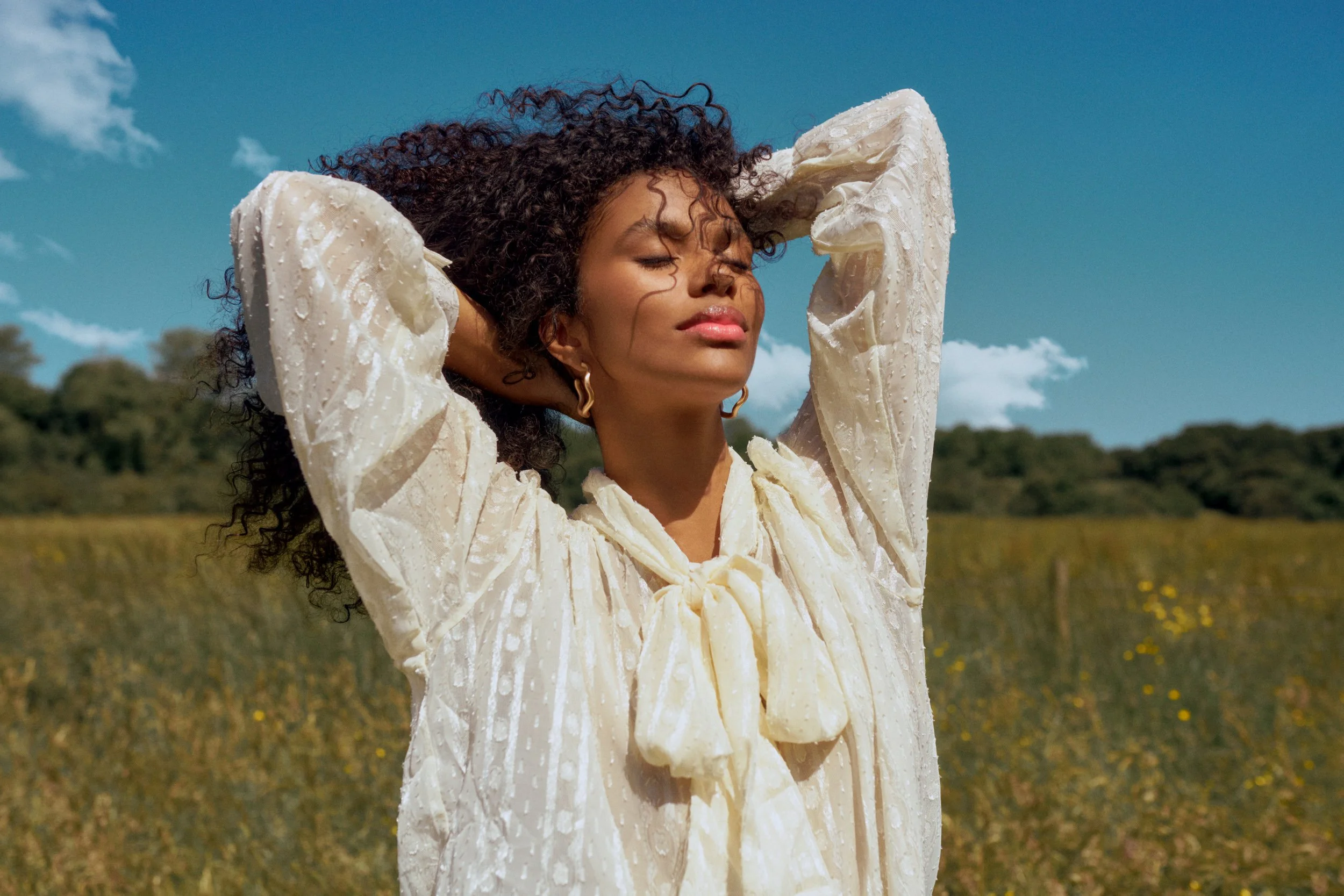 With a change of colour palette to the collection and a subtle nod towards the Autumn season, the art direction will feel like and end-of-summer story. Still a strong focus on pretty dresses and patterns but with longer sleeves and an introduction of some layering. The mood of the campaign will have a sense of escapism shot against the backdrop of the English countryside. Wild woodlands and long grasses will add texture.